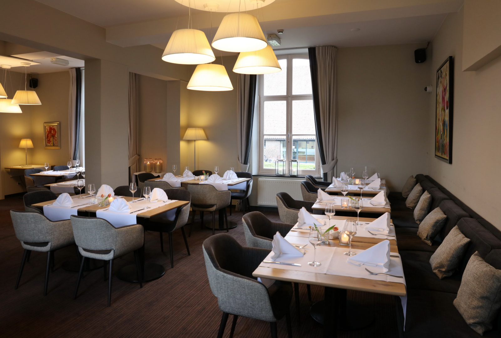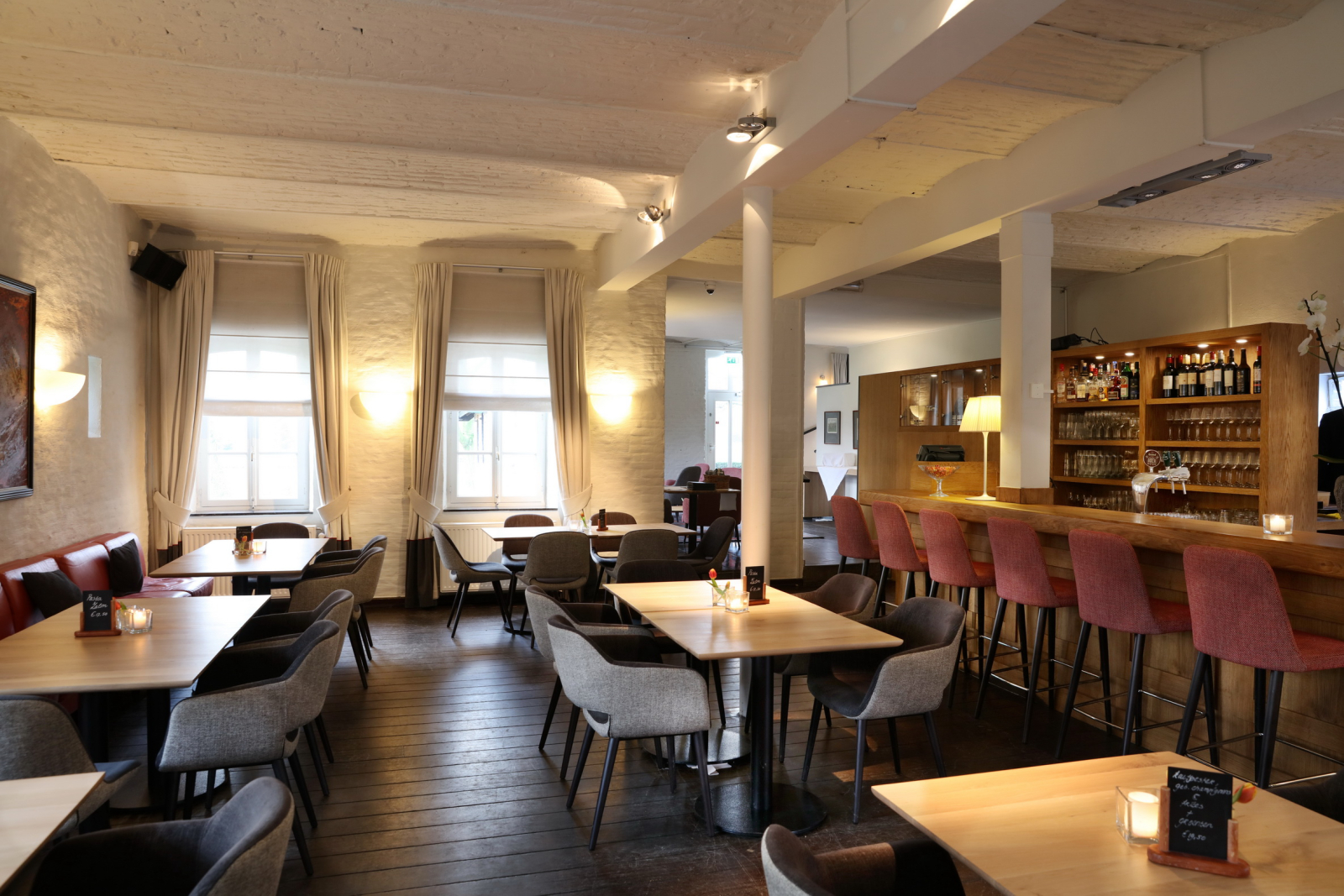Voor groepen zijn privatieve ruimtes beschikbaar en er is gratis parking met elektrische oplaadpunten.