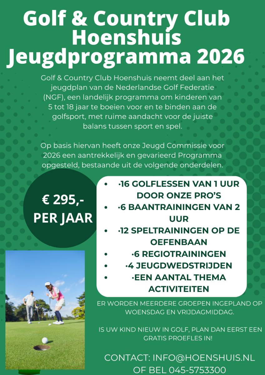Jong of zeer jong, starter of gevorderd: jeugdspelers worden optimaal omkaderd op G&CC Hoenshuis.